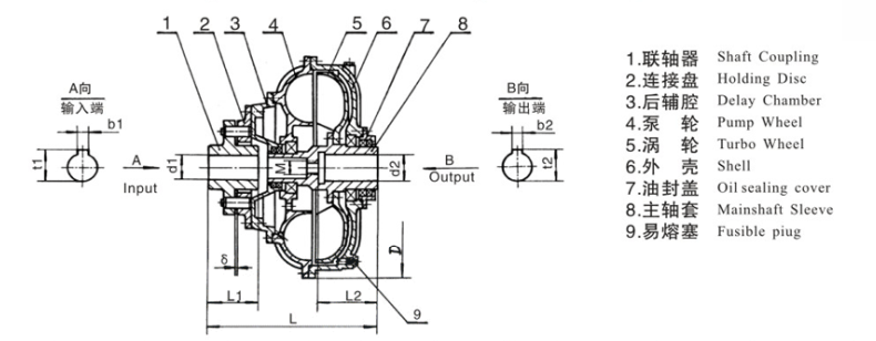 Điểm đặc trưng: khớp nối thủy lực YOX có cấu trúc đơn giản, chiều dài trục ngắn, lắp đặt và điều chỉnh thuận tiện với kiểu kết nối của chốt định vị nilong, cũng như tính tiện lợi của chốt định vị nilong tự chế tạo. nó là kiểu kết cấu cấu trúc phổ biến nhất của khớp nối thủy lực ở thời điểm hiện tại.